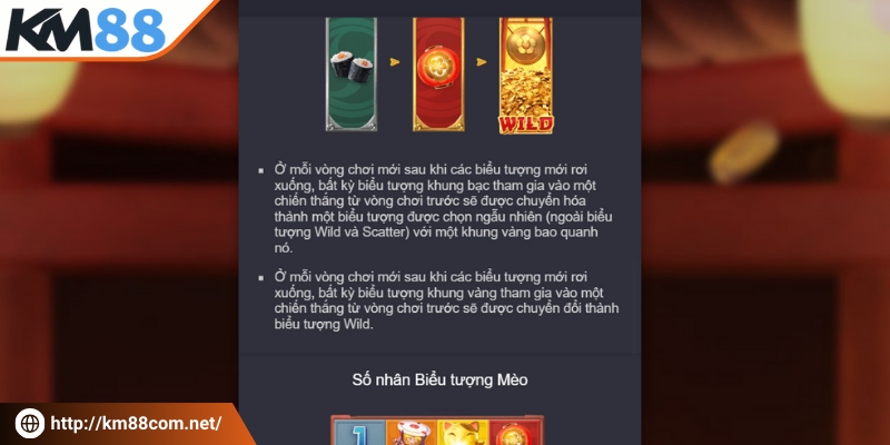 • Số nhân biểu tượng mèo: Biểu tượng mèo xuất hiện trên guồng quay bất kỳ, tiền thưởng chiến thắng sẽ được nhân x2.